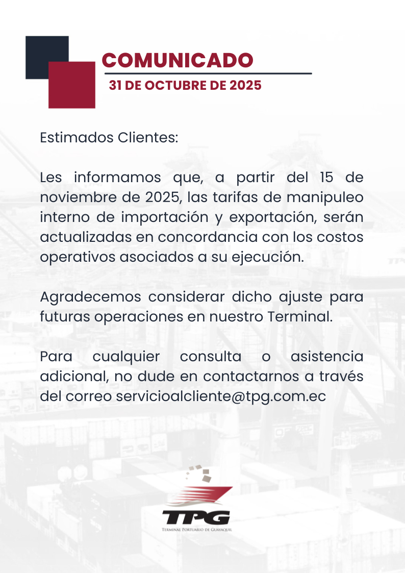 Ajuste de tarifas 15/11/2025 PRM 3.0 3 Nov Publicado por TPG Categoría: ComunicadosNoticiasTPG No hay comentarios Deja una respuesta Cancelar la respuesta Post Comment
