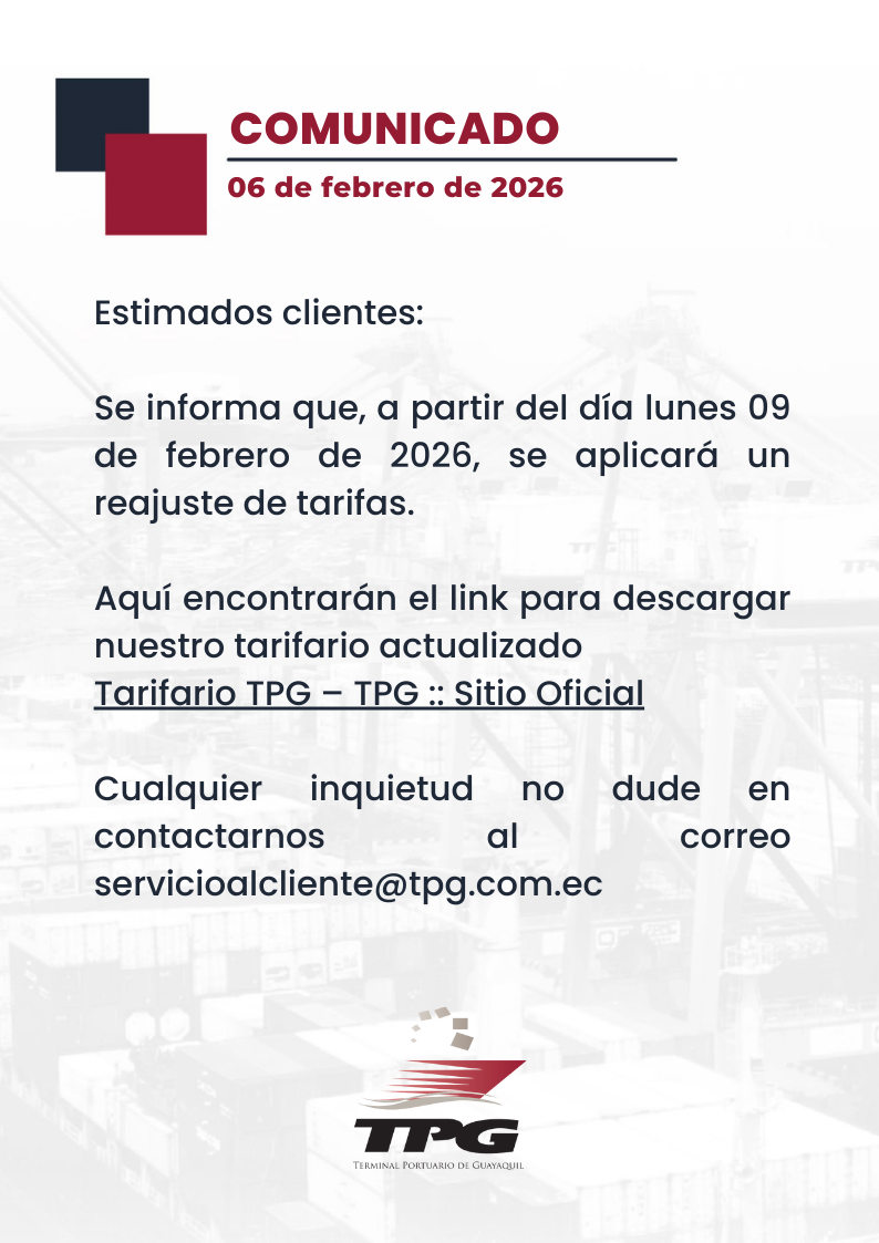 Ajustes tarifas 2026 9 Feb Publicado por TPG Categoría: ComunicadosNoticiasSin categoría No hay comentarios Deja una respuesta Cancelar la respuesta Post Comment