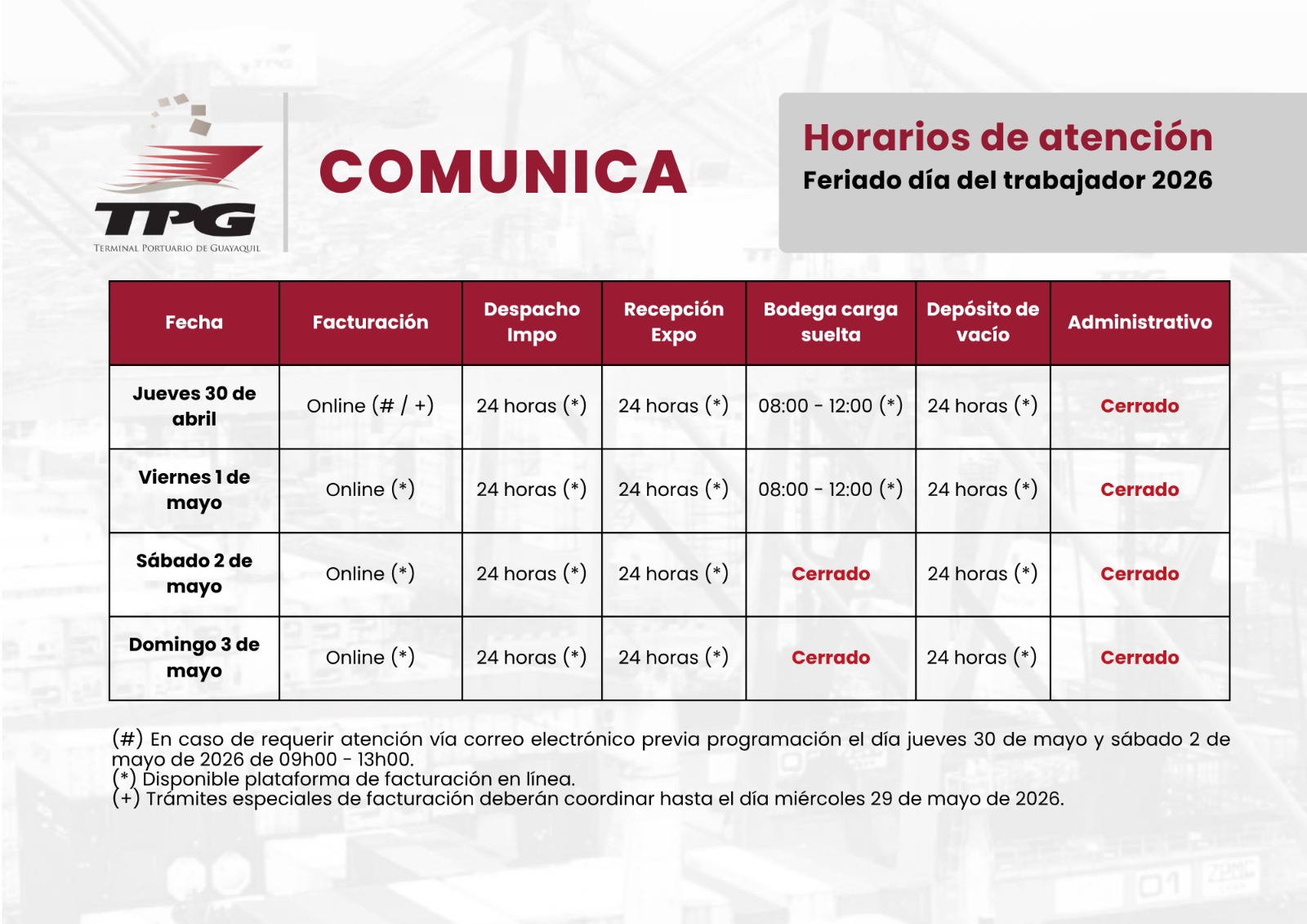 Cualquier inquietud no dude en contactarnos a: servicioalcliente@tpg.com.ec
