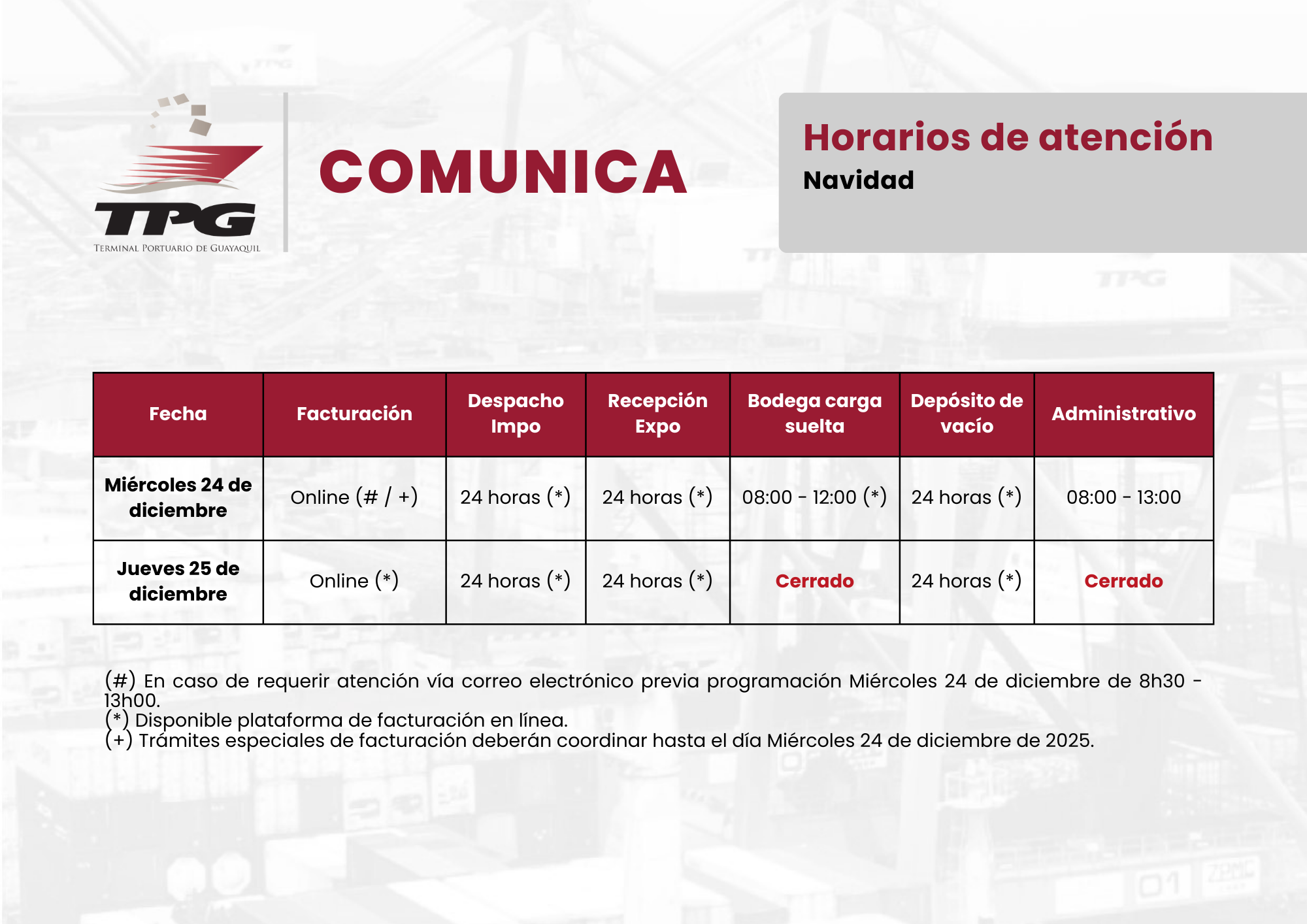 TPG :: Sitio Oficial > Noticias > TPG > Comunicados > COMUNICADO HORARIO DE FERIADO – NAVIDAD